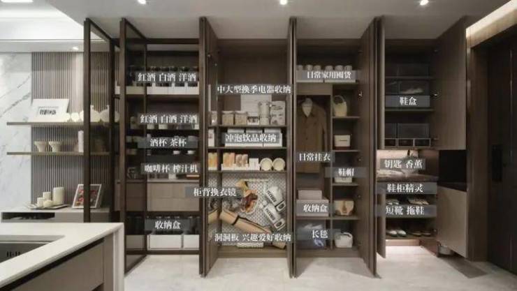 入户玄关定制了成排的玄关柜,直径约2.8米!跟市面常规产品比超尺度、存储大、分类全、使用便捷,含石材万能置物台、悬空拖鞋区、柜内更衣镜;第二排预留空间可作为净衣消杀场景、鞋柜杀菌护理机、玄关挂衣区;第三排空间可拓展多变,预留扫地机器人插座可加载电器、一键总开关、可视对讲机。