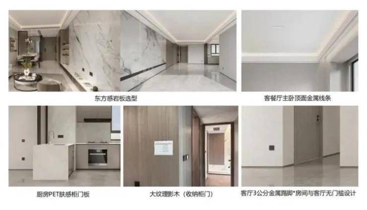 室内采用影木饰面,拼花纹路清晰、完整,显得很雅致;包括精装整体配色主打温润宜人的东方色彩,窗、门主打青灰色,一股轻奢的中国风!