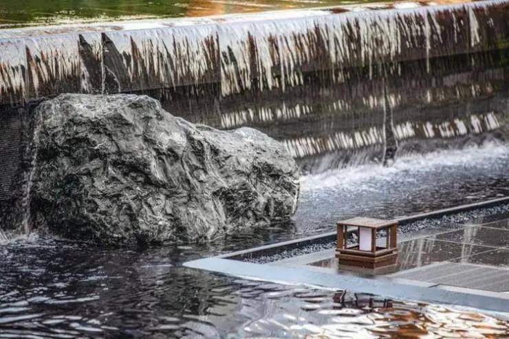 打造长约200米、近1000㎡水系景观,贯穿入口、庭院、归家轴线和景观主轴,采用五重造水形态,可行、可望、可游、可居,正是中式园林所追求的空间意境。