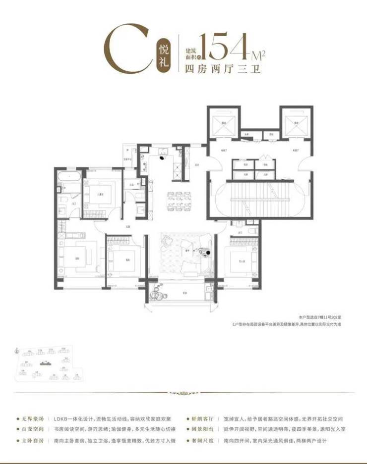 前期在售建面约为99-130㎡三至四房,丰富多样户型,满足全龄居住所需!围绕中国家庭的生活喜好精心设计,包括约2.8米大尺度玄关柜+餐客厨空间+双面岛台收纳+高窗墙比采光面+X百变空间+全卧飘窗+LDKB一体化+约6.2米奢阔面宽,充分实现功能性、空间感和舒适度的统一,方寸之间尽显匠心!